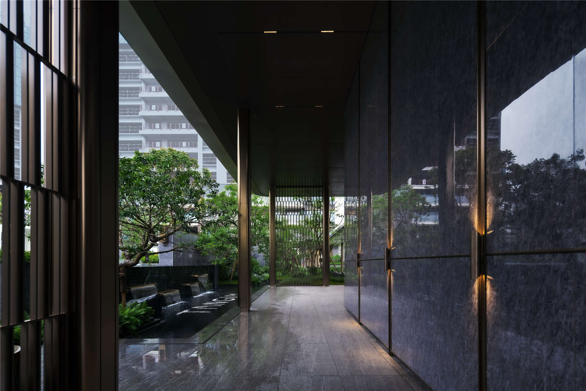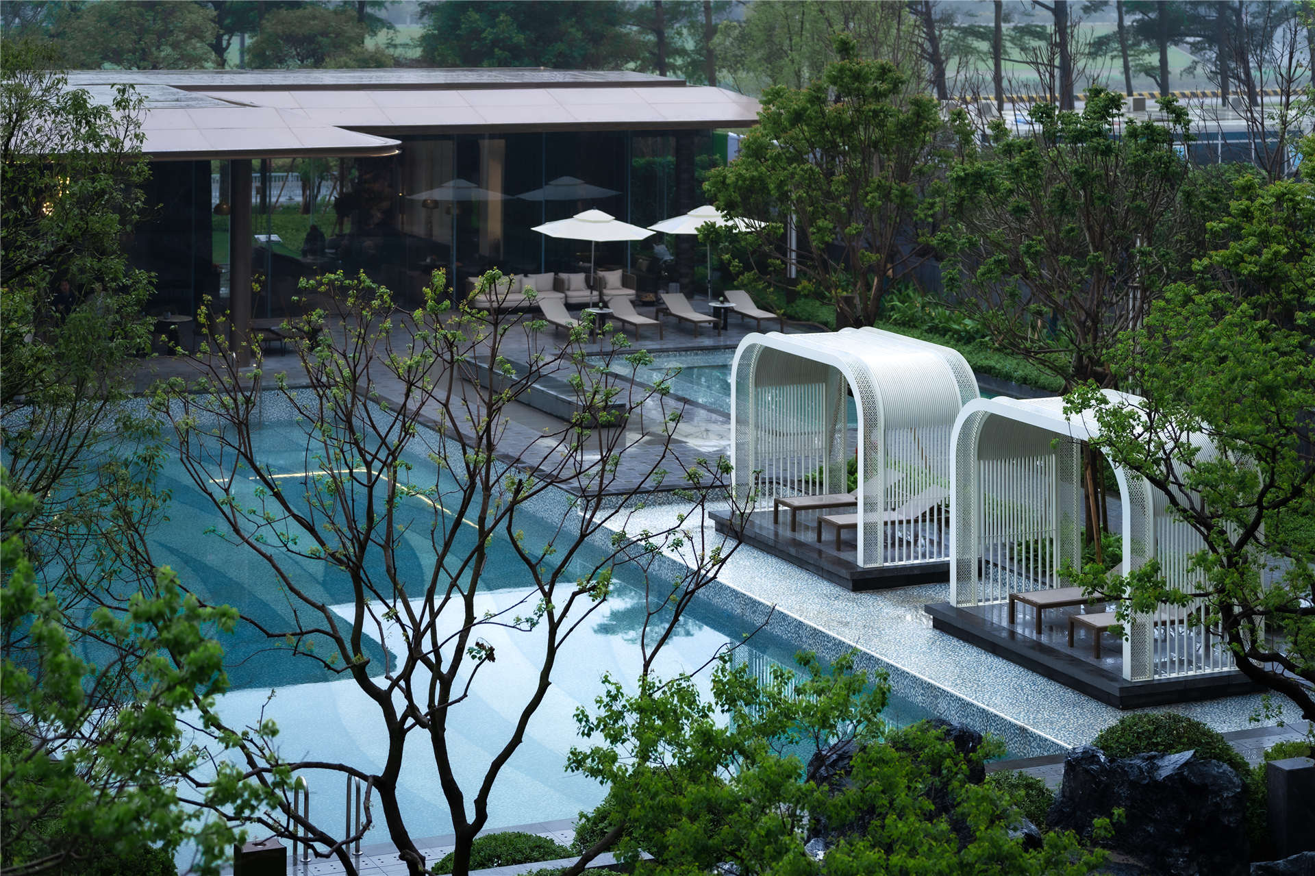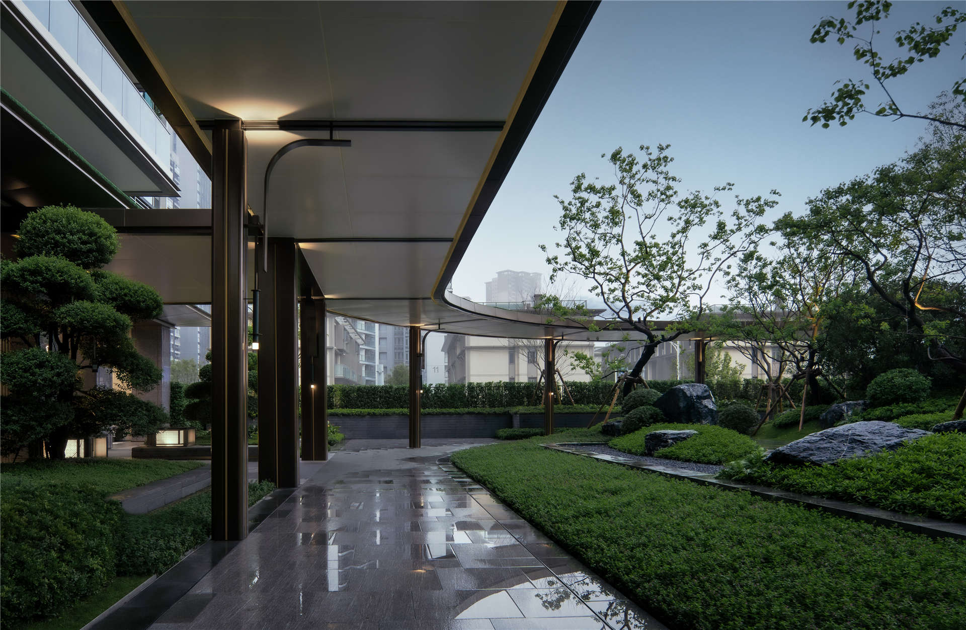 景觀借鑒傳統(tǒng)園林的布局和手法,仿古“獅子林”,以水池為中心,構(gòu)建 “南山—北苑—東堂—西園”的景觀格局,并通過“水—山—林—廊”把各個(gè)主題空間串聯(lián)起來,咫尺之間營(yíng)造多維林庭,把自然美和藝術(shù)美融為一體。