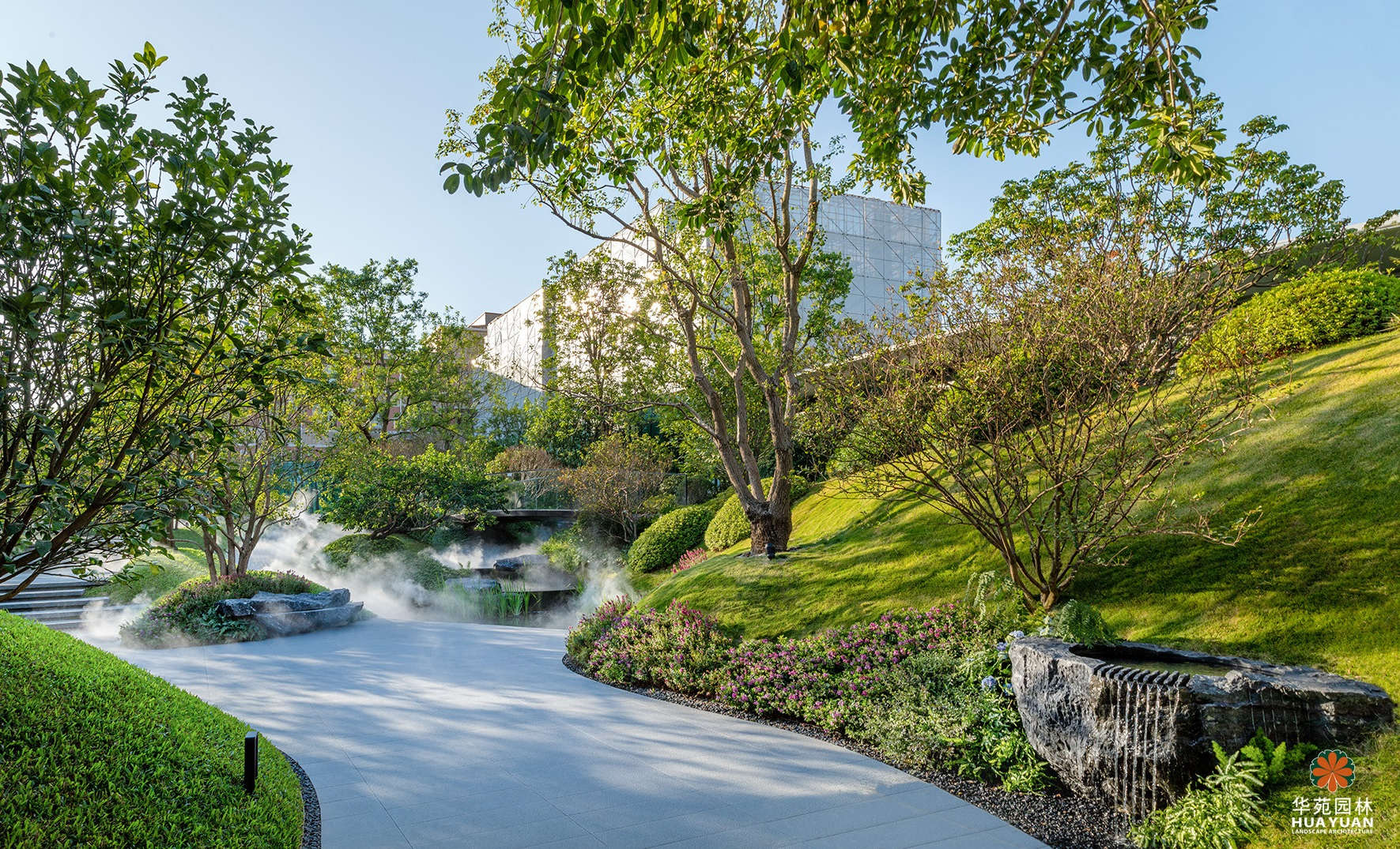 項目景觀以迂回的動線,營造“揚帆”“森?!薄捌评恕薄皻w林”四大景觀主題空間,展現(xiàn)繁華中的城市綠洲。該項目示范區(qū)園林景觀工程由公司廣州運營中心承建。