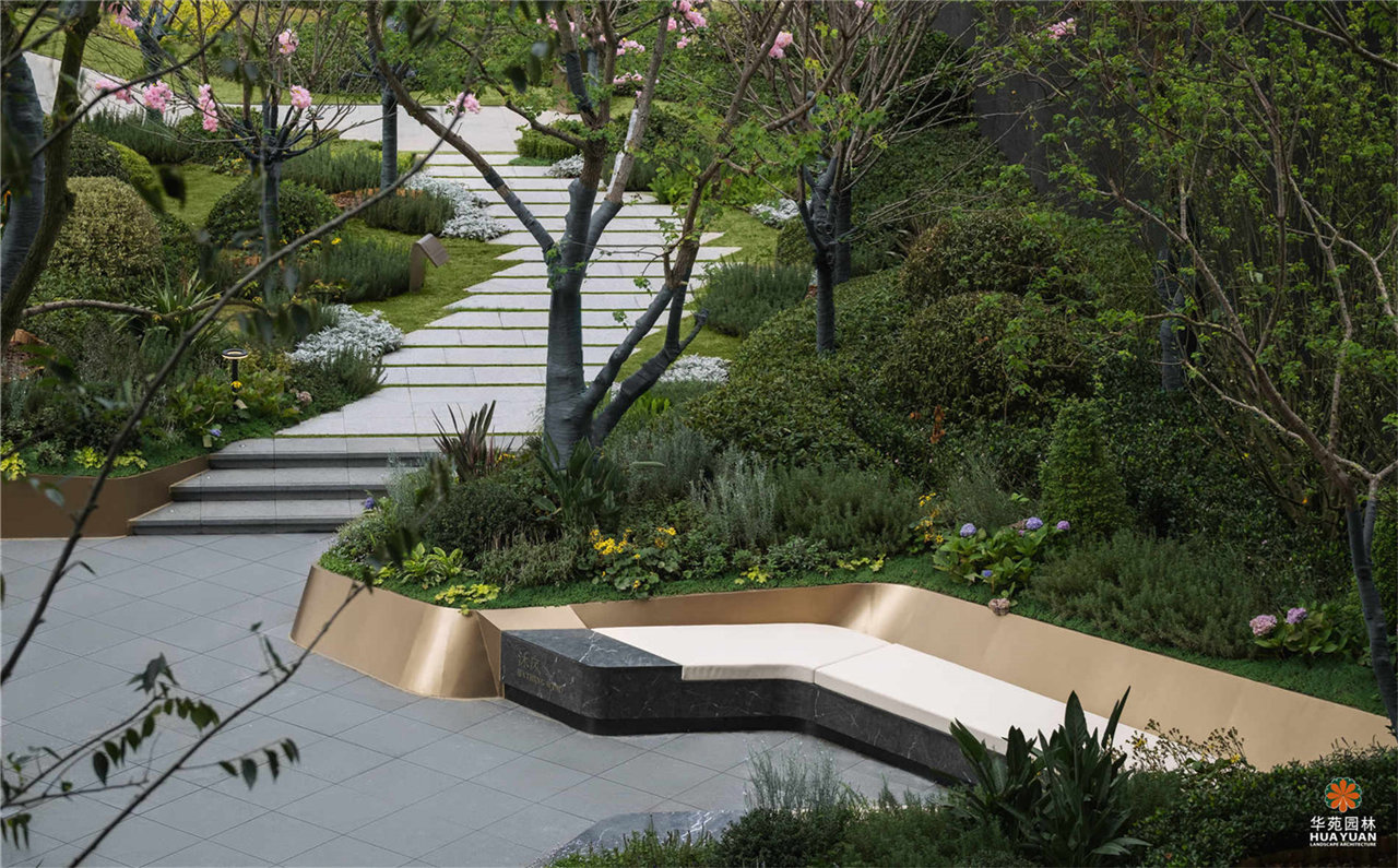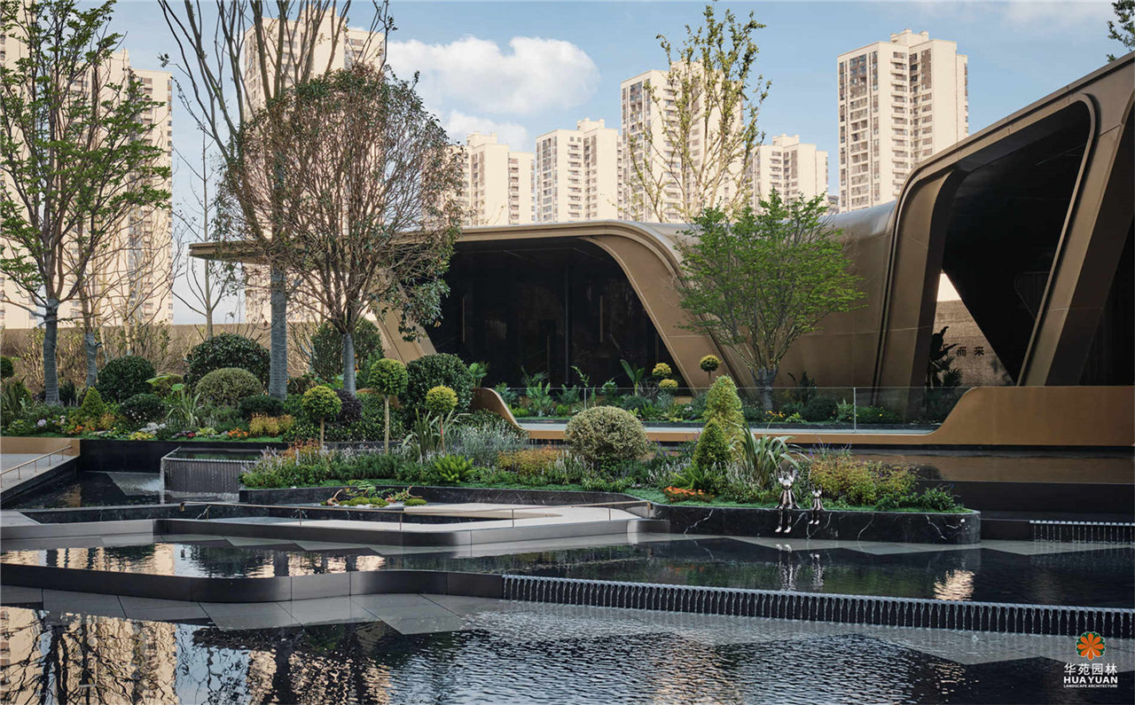 項(xiàng)目坐落于觀山湖片區(qū),華苑園林匠心筑造近萬平度假景觀,古銅色不銹鋼包邊會(huì)客廳造型別致;超大中庭漸變色鏡面水景潺潺律動(dòng);高低錯(cuò)落的植物組團(tuán)與不銹鋼曲面花池相得益彰,于城市中營(yíng)造一方自然畫境。