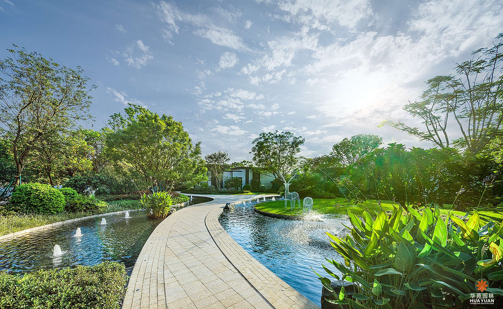 項目景觀以“生態(tài)都市”為理念,采取不同特色的水景呼應(yīng)自然湖景,運用簡潔的景觀線條與大面積的綠化空間,營造具有現(xiàn)代格調(diào)的理想生態(tài)湖居。