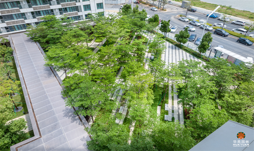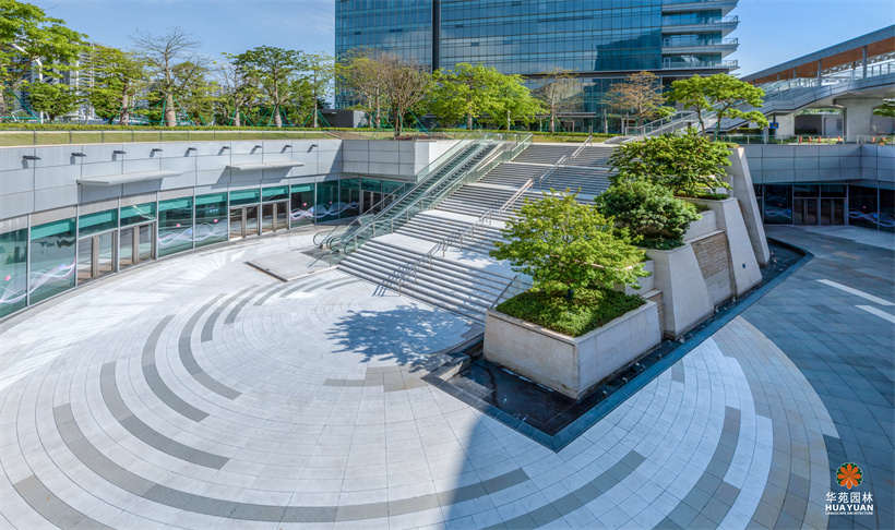 招商蛇口根據(jù)大灣區(qū)規(guī)劃打造的城市名片之一——深圳會(huì)展灣位于深圳寶安區(qū),其中,招商會(huì)展灣?中港廣場占據(jù)會(huì)展中心門戶優(yōu)勢區(qū)域,薈萃甲級商務(wù)寫字樓、五星級酒店、高端公寓等,是灣區(qū)會(huì)展商務(wù)綜合體的標(biāo)桿項(xiàng)目。 項(xiàng)目采用現(xiàn)代的景觀格調(diào),以灰調(diào)的線性地鋪搭配多樣水景與特色垂直綠化,用簡潔的線條打造多重園林景觀。