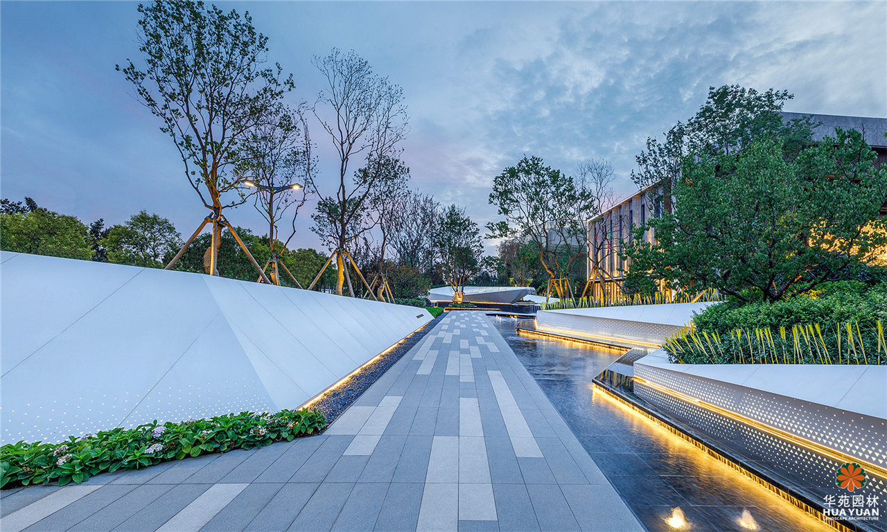 項目將伊河之姿抽象為多樣的折線形式,打造“覓境”、“疊山”、“對影”、“尋石”、“追趣”、“樂居”六個主題空間,營造出簡約、自然的詩意生活。