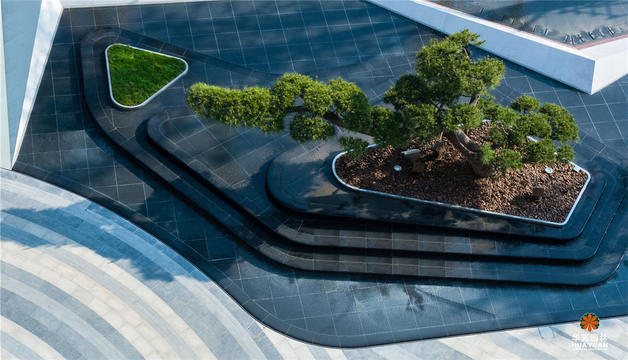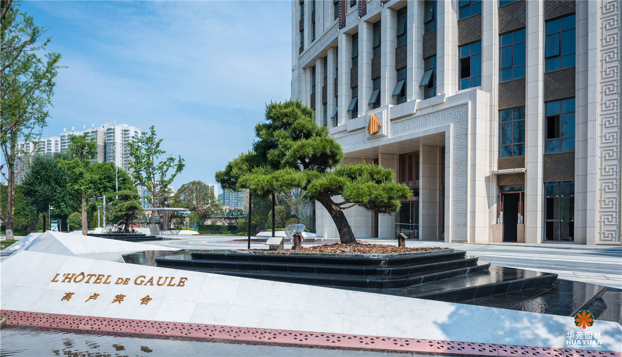 高端商業(yè)綜合體中的五星級酒店,是華苑園林的設計、施工一體化項目。從法國盧浮宮的金字塔形玻璃入口--與鉆石的切割面汲取靈感,打造簡約、優(yōu)雅的景觀格調,并融入本土文化,引入山形、水韻、古松等東方元素,創(chuàng)造出帶有文化記憶的現(xiàn)代景觀效果。