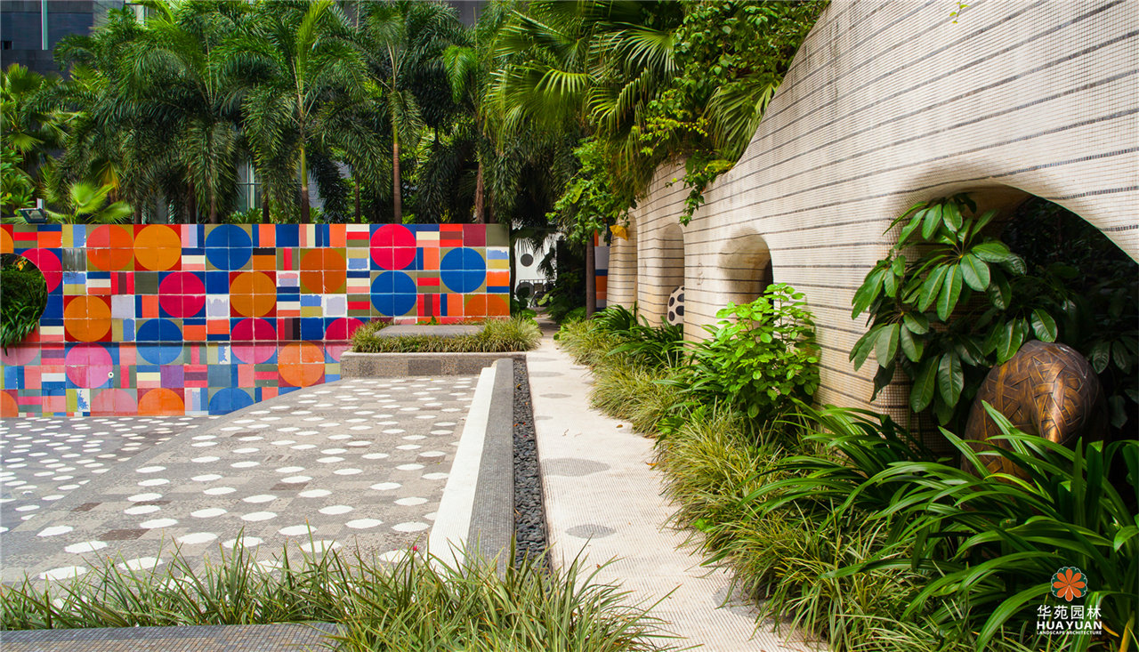迷幻的馬賽克鋪貼,魔幻的雕塑小品,仿佛進(jìn)入了愛麗絲夢游仙境的場景,充滿幻想與趣味。