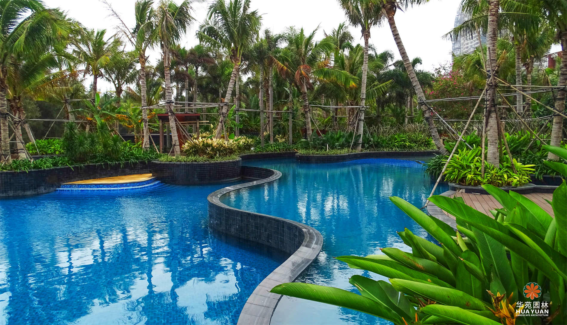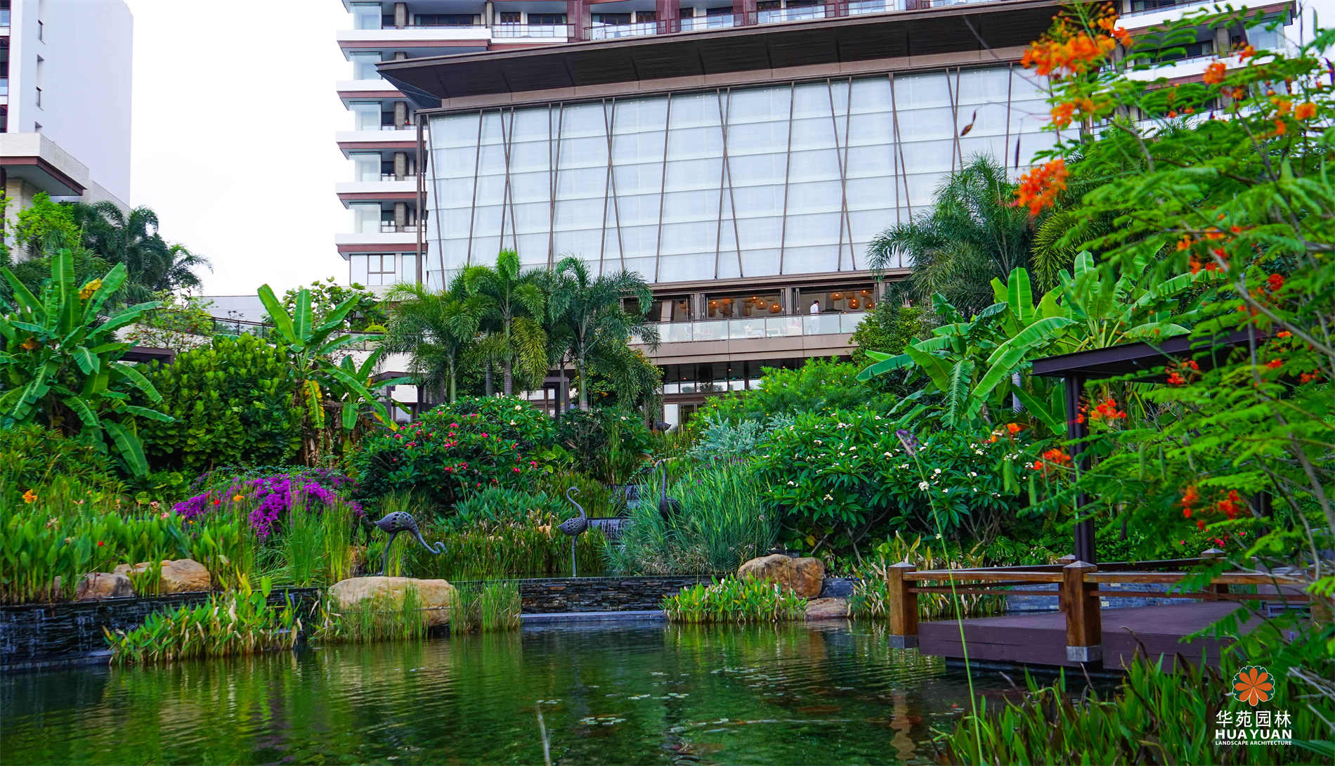 國家海岸景區(qū)的璀璨明珠,坐擁南中國海的瑰麗景色;獨(dú)具民俗風(fēng)情的小品、藝術(shù)鋪裝,裝點(diǎn)于園林之中,個(gè)性而不失精致;多層疊級(jí)氣勢(shì)水景,流水自頂部跌落,霧氣氤氳而出,與曲折連橋、特色水榭、豐沛綠植,構(gòu)建出“雖由人作,宛自天開”的自然景致。