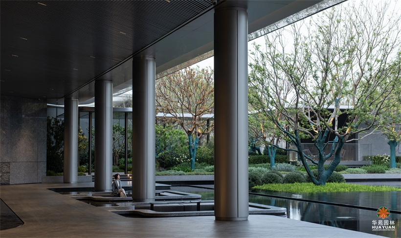 項(xiàng)目位于廣州天河智谷,以現(xiàn)代主義設(shè)計(jì)語言刻畫出場地的靈動(dòng)與松弛感,華苑園林匠造大規(guī)模架空層,精工細(xì)作多處藝術(shù)鏡面水景、弧形景墻,以自然手法堆坡造林,刻畫森系場景,營造具有藝術(shù)和精致煙火氣的品質(zhì)住宅。
