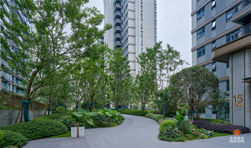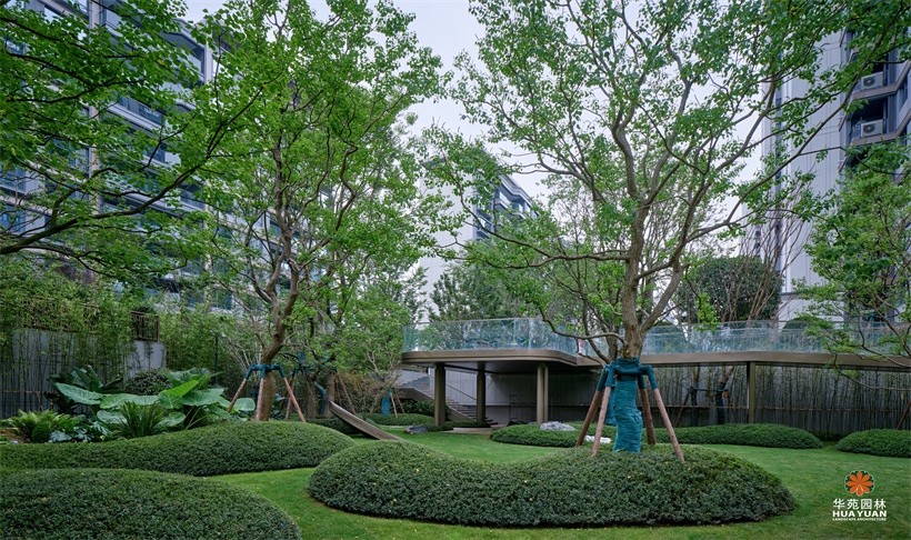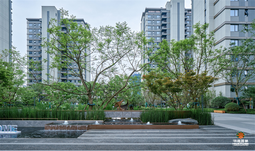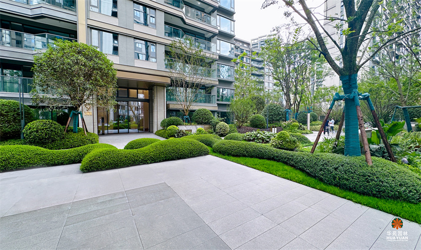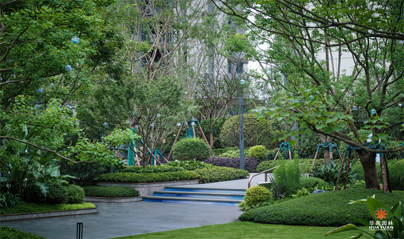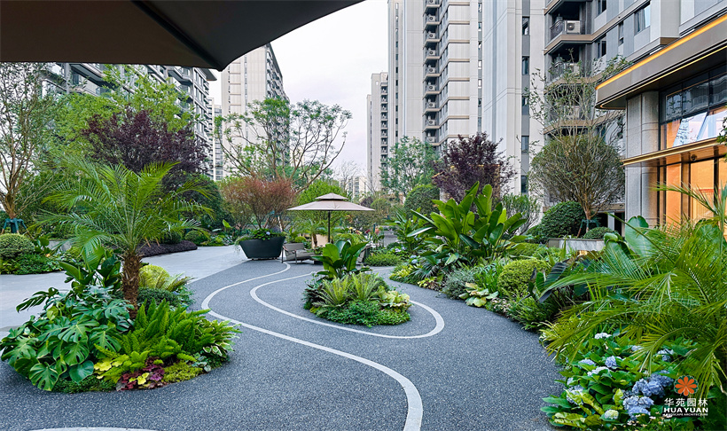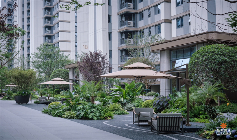 項目采用融合現(xiàn)代與藝術(shù)裝飾,運用優(yōu)質(zhì)材料及精湛細(xì)節(jié)處理工藝,打造富有金屬質(zhì)感的景墻、雕塑、廊架等硬景;精選以綠色為基底的綠化植物,營造森系詩意花境效果,為庭院花園增加層次感和質(zhì)感變化。