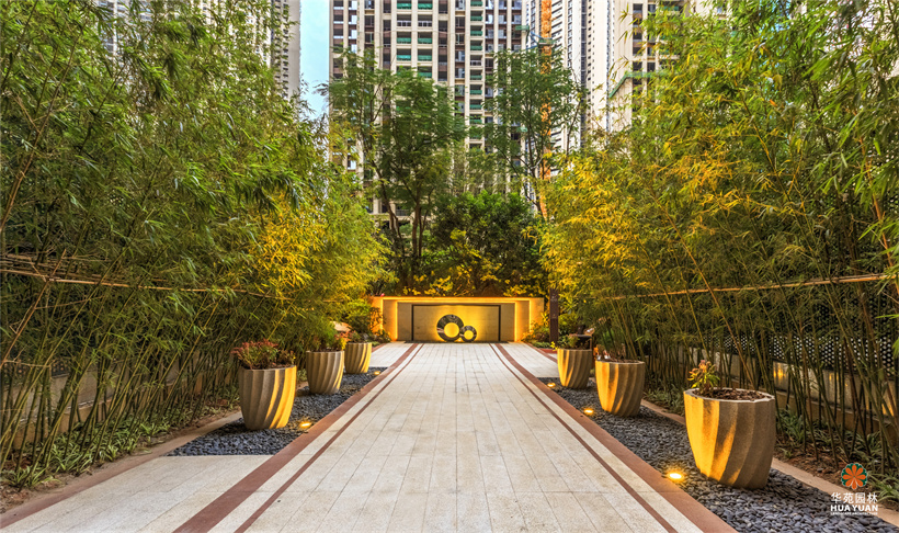 華發(fā)集團(tuán)在廣鋼新城的高端豪宅標(biāo)桿項(xiàng)目。層次豐富的入口景觀、大氣的不規(guī)則疊級(jí)鏡面水景,加上景墻與綠植,營(yíng)造出多變的景觀意趣;細(xì)流從主題景墻中噴射而下,嘉寶果樹(shù)點(diǎn)綴于靜水中,浪漫而清新;高貴典雅的歐式景墻、規(guī)整大氣的地臺(tái)式水景,加上豐富多彩的植物,共同構(gòu)建出典雅精致的園林景觀。