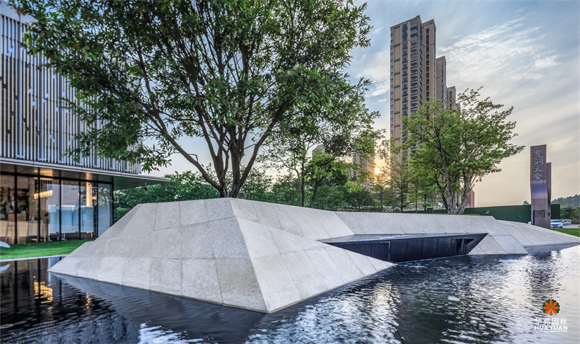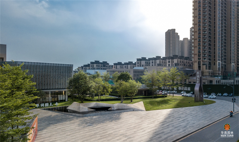榮獲廣州市城市綠化協(xié)會“2016-2017年度廣州市園林綠化優(yōu)良樣板工程金獎” 華潤置地于廣州的首座集別墅、洋房、LOFT和商業(yè)街區(qū)為一體的高端項目。不同灰度的線性鋪裝與鑲嵌式異形鏡面水景相互映襯,不規(guī)則樹池上,點綴著冠形優(yōu)美的喬木,與躍動的涌泉、蕩漾的漣漪,為空間增添了不少靈動的氣息。開闊的草坪上,冠形勻稱的大喬與精修的灌木相搭配,讓空間更顯開闊、疏朗。