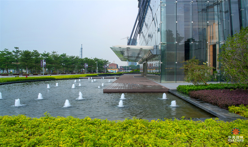 采取現(xiàn)代造園工法,凝聚“交通”企業(yè)精神,煉就一個(gè)個(gè)時(shí)代與力量的符號(hào),大幾何布局中,融入小幾何綠植,“錨”定江山格局;親水臨江,例外水景交互輝映,道道線性波紋,傳寫激蕩江濤;定制星級(jí)商務(wù)港之園林舞臺(tái),成為廣州之窗上的標(biāo)志風(fēng)景線。