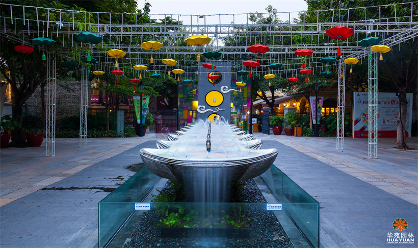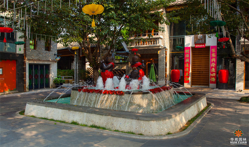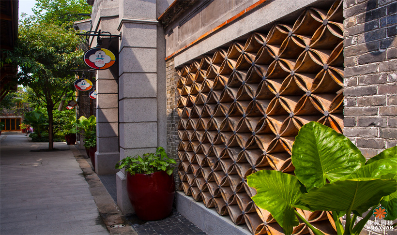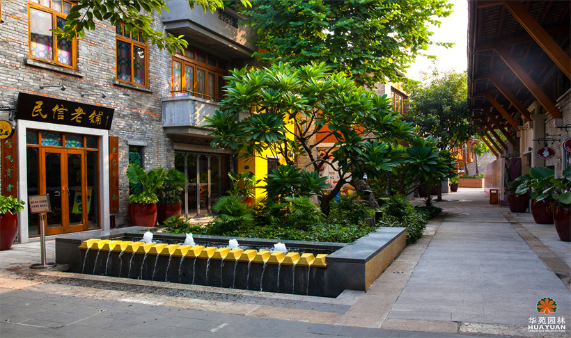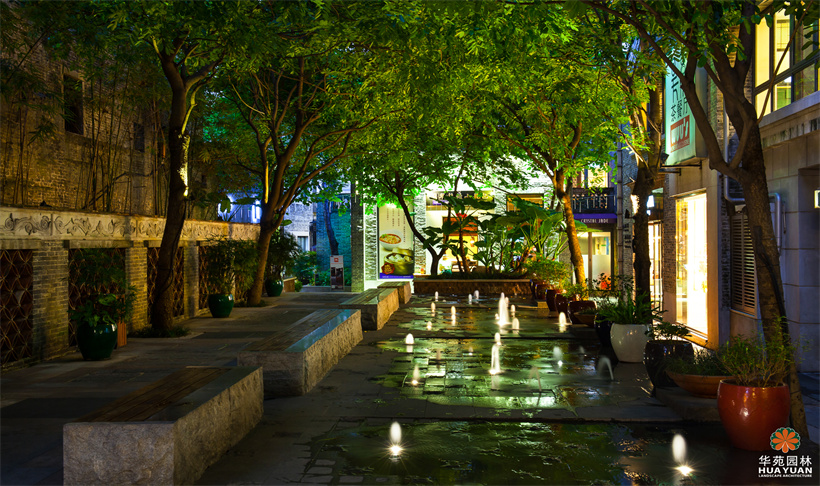榮獲2014年度中國(guó)風(fēng)景園林學(xué)會(huì)“園林優(yōu)秀工程金獎(jiǎng)” 集文化、藝術(shù)、旅游、商業(yè)、休閑于一體的佛山新地標(biāo)。在瀝瀝青石板道上,復(fù)古噴泉、陶瓷雕塑、嶺南盆栽、原生古樹(shù),一色一香皆醇厚,瓦拼景墻、花紋仿古水洗石鋪地,時(shí)如工筆,時(shí)若潑墨,步步勾勒綿延畫(huà)卷;古材新用,融鑄嶺南工法和現(xiàn)代美學(xué)的雙重追求,重?zé)ǔ鎏耢o典雅的南國(guó)氤氳。
