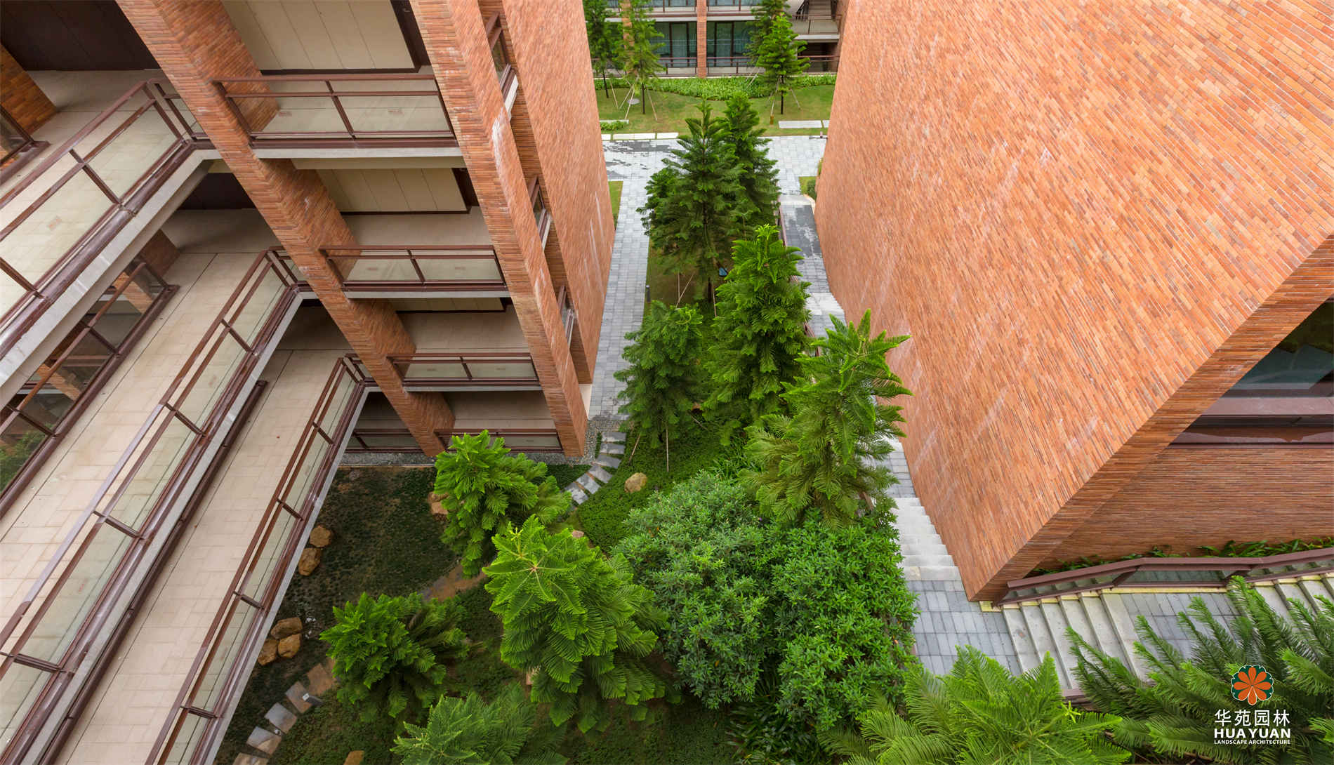 華潤(rùn)大學(xué)南校區(qū)是華潤(rùn)集團(tuán)傾心構(gòu)建的園林式高品質(zhì)大學(xué),依山傍海的自然環(huán)境與簡(jiǎn)約大氣的現(xiàn)代園林景觀有機(jī)融合,創(chuàng)造出中國(guó)最美企業(yè)大學(xué)。星光大道兩側(cè)列植著美麗異木棉,形態(tài)統(tǒng)一,規(guī)整有序,而高低錯(cuò)落的綠化空間與簡(jiǎn)約的綠化造景手法讓整體校園更具現(xiàn)代感。