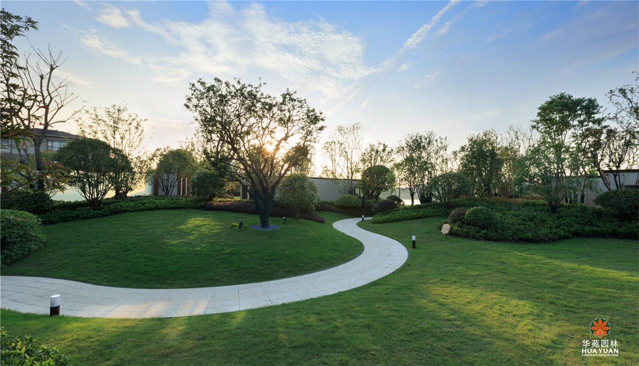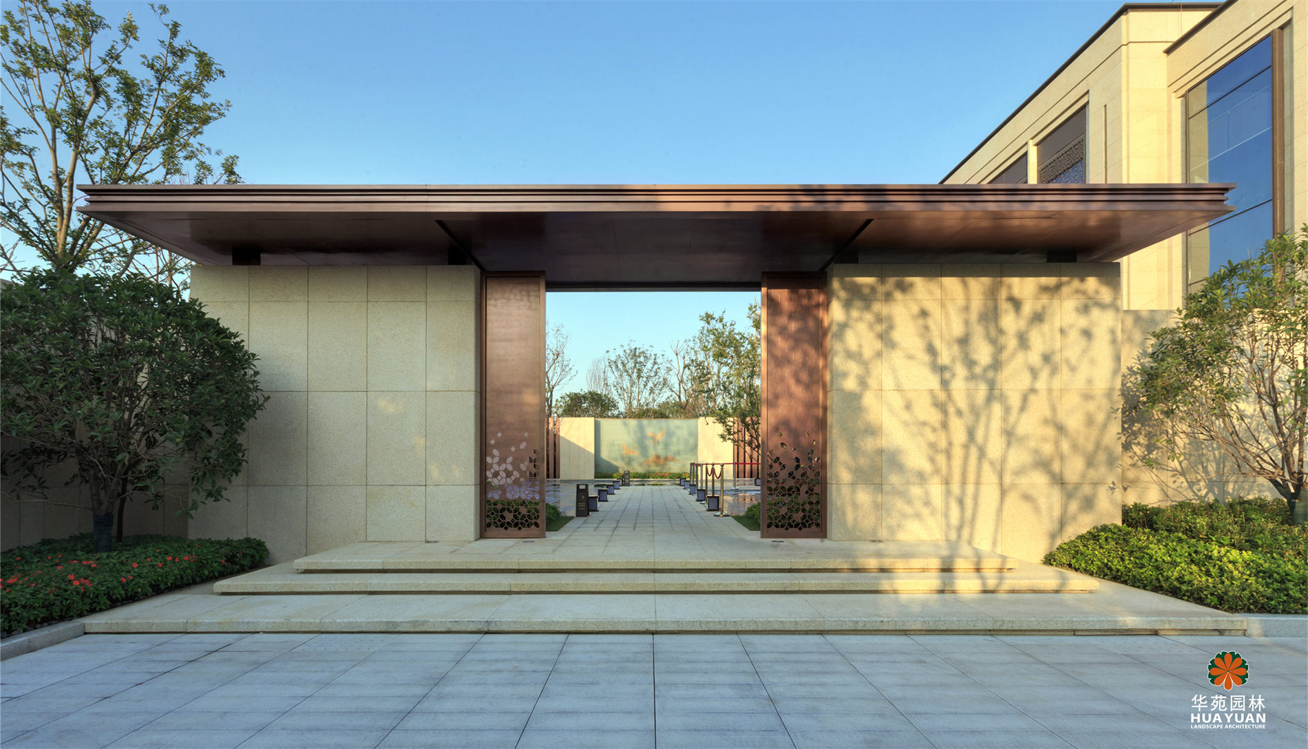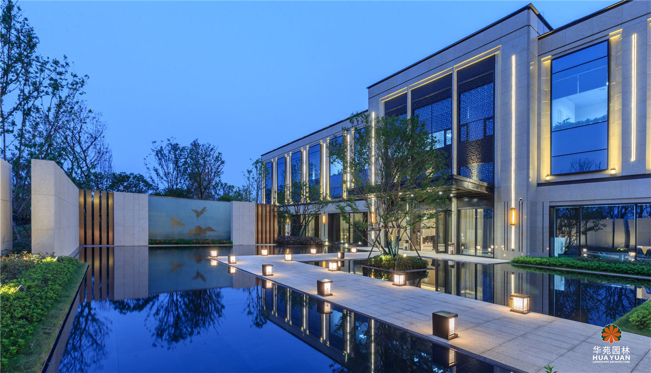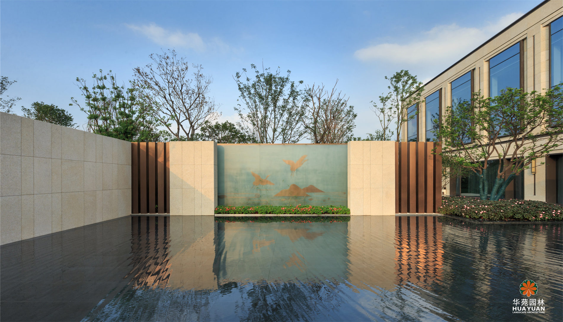 融創(chuàng)布局東西湖的首個(gè)高端精品系項(xiàng)目。左右兩側(cè)開(kāi)敞的大幅鏡面水景,汀道自水面穿過(guò),孤植樹(shù)、燈光、墻影倒映水中,幻化出一方鏡像空間;簡(jiǎn)約的Logo景墻、融合傳統(tǒng)中式紋路的門(mén)樓、“山形鶴影”的主題屏風(fēng),皆以現(xiàn)代語(yǔ)言構(gòu)建出中式園林之神髓。
