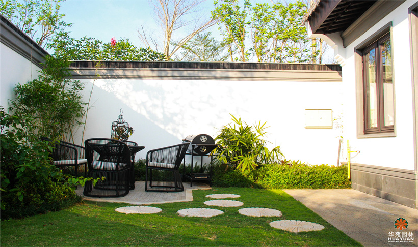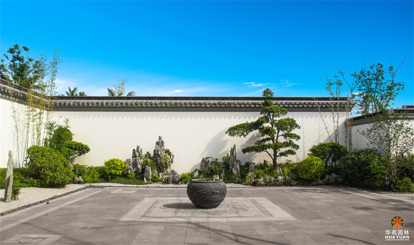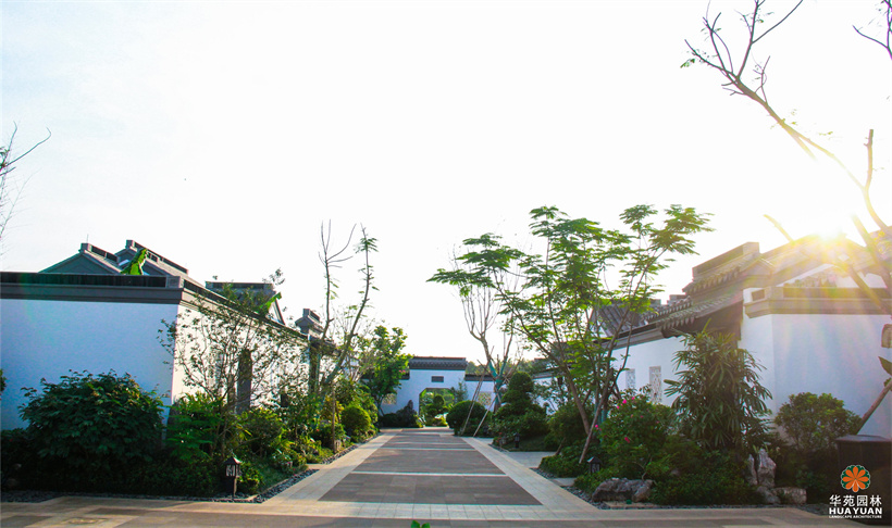 項目以“野逸”為設計靈感,糅合優(yōu)美的自然環(huán)境與古人歸隱田居意趣,將中國傳統(tǒng)街巷與居住院落相融合,打造中式韻味濃郁的純別墅。白墻隅處植幾竿青竹,五蝠地雕點綴嬌艷荷花水缸,姿態(tài)秀逸的羅漢松、置石小品,落地宮燈,讓人細品中式院落之美。于此,私享天人合一的生活大境,回歸中國人寄情傳統(tǒng)的理想人居。