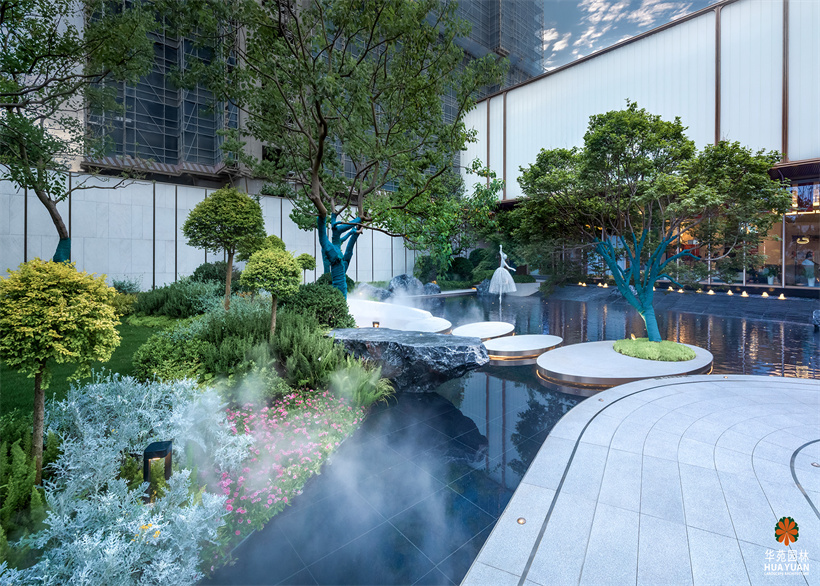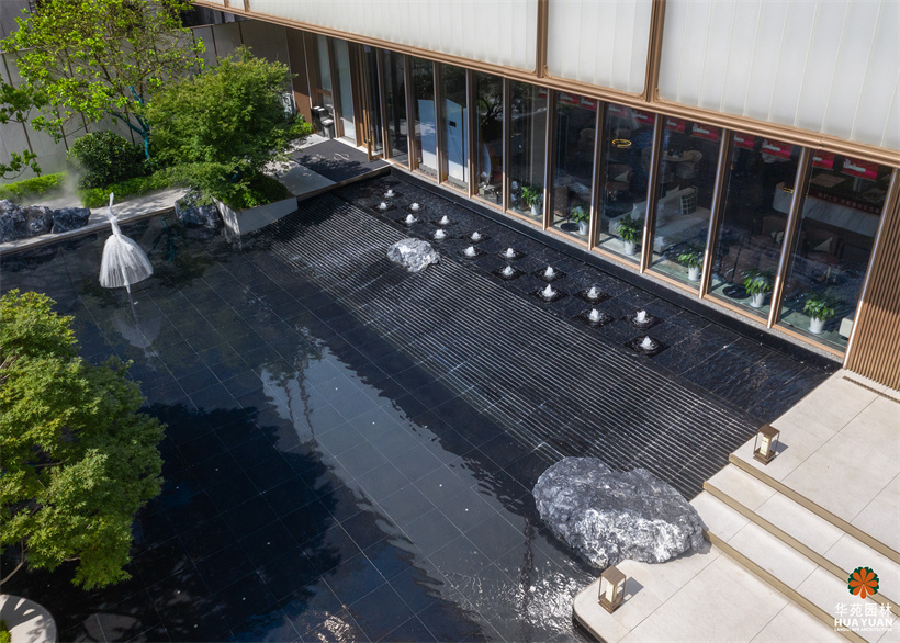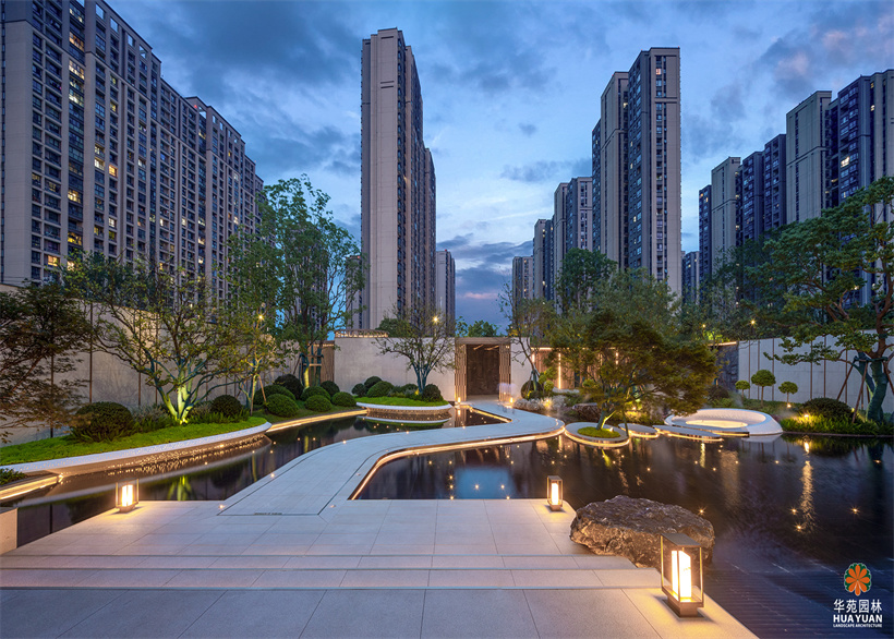 以現(xiàn)代簡約的景觀風(fēng)格,采用簡潔的景觀線條,大面積的鏡面水景,多姿多彩的花境,在繁華都市中營造寧靜、舒適又不失格調(diào)的清雅之境。