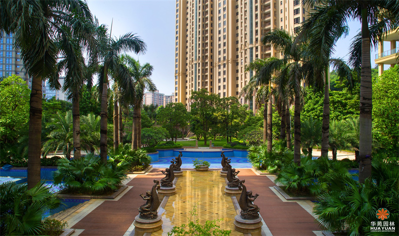 整體園林景觀采用新古典主義的風(fēng)格,以規(guī)整流暢又富有韻律的線條打造出對稱式的軸線空間景觀,使整個園林布局條理清晰、主次分明。逾2萬平方米的中央園林景觀,運(yùn)用三重垂直園林體系,構(gòu)建出高雅華麗、氣勢雄偉的皇家園林風(fēng)情。