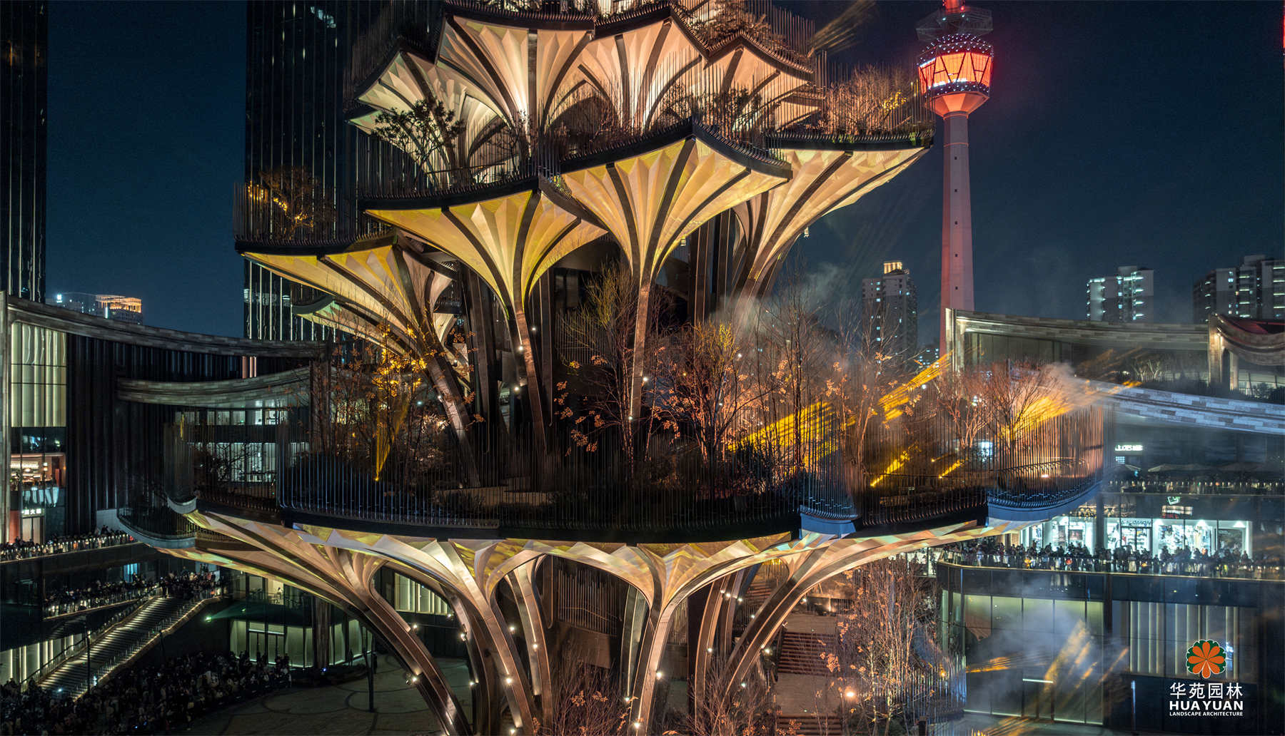由國(guó)際著名建筑師托馬斯·赫斯維克設(shè)計(jì)、靈感來(lái)源于西安古觀音禪寺千年銀杏的“生命之樹(shù)”,位于西安兩大軸線交匯處,成為整個(gè)CCBD項(xiàng)目的靈魂。項(xiàng)目景觀以絲綢之路為靈感,重現(xiàn)絲綢之上亞歐大陸間七重生態(tài)氣候景觀和地域風(fēng)貌。