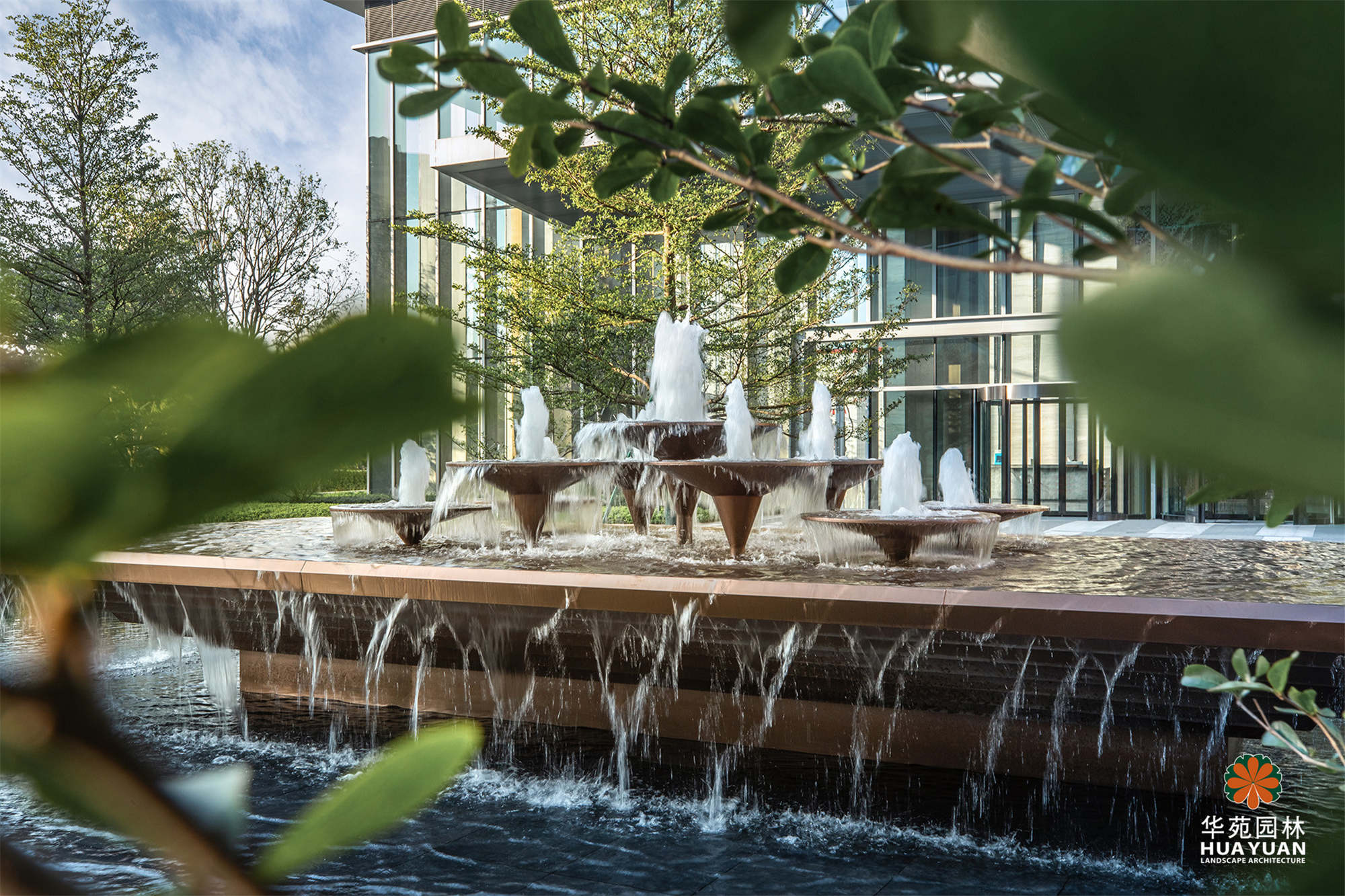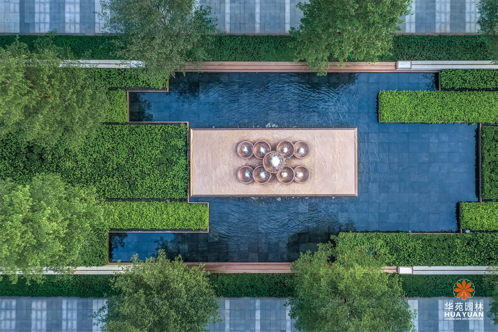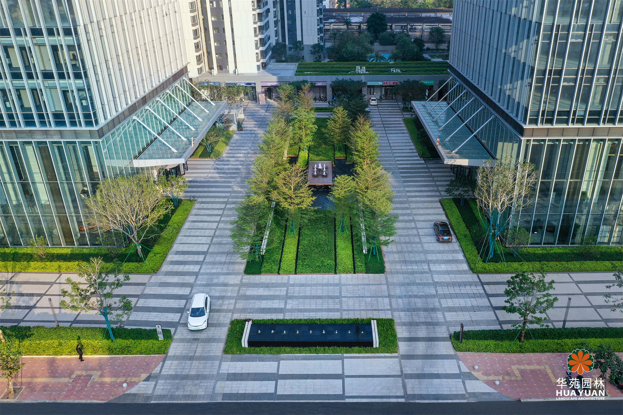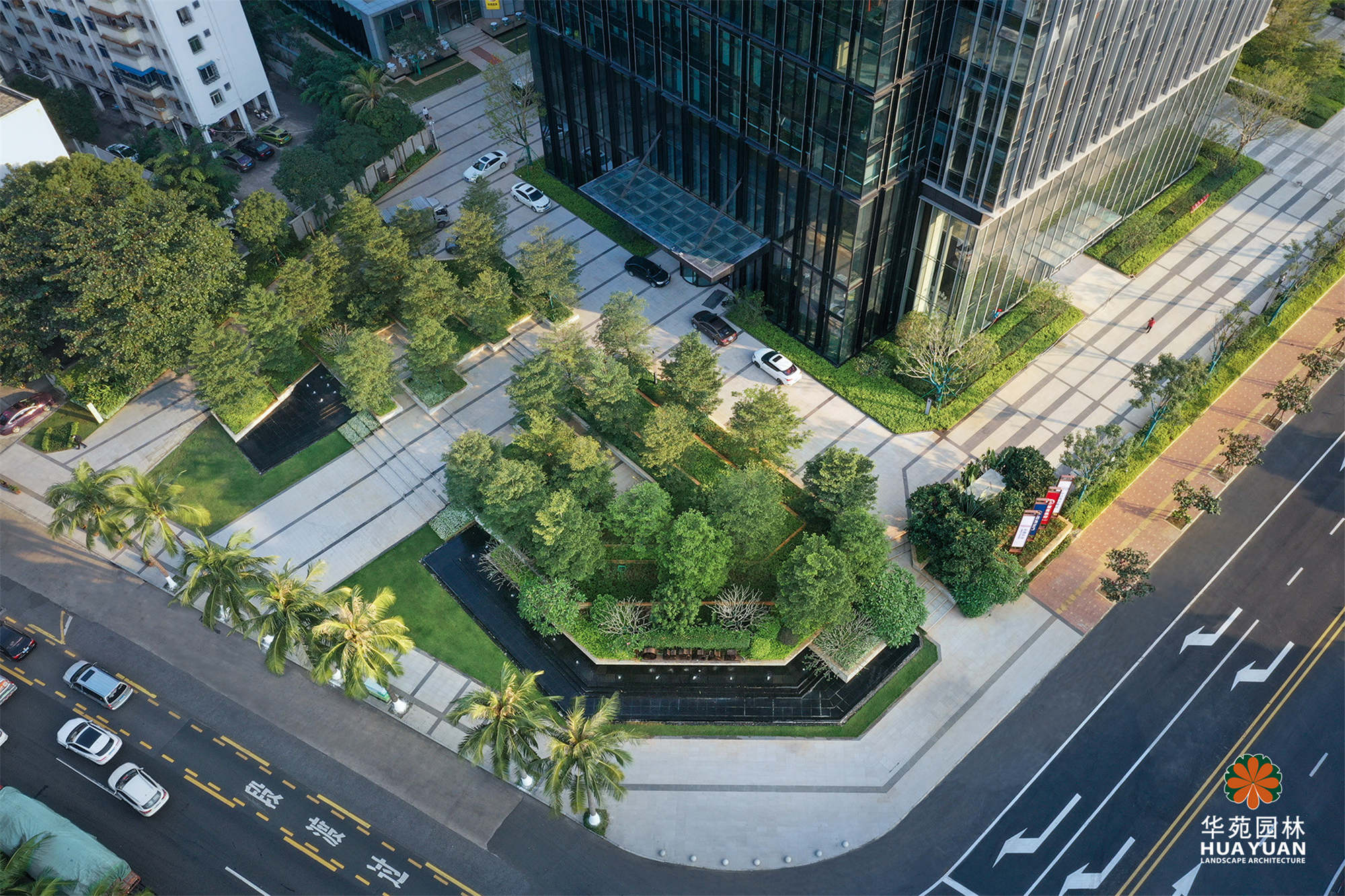 項(xiàng)目以“森林綠洲”為景觀主題,結(jié)合??诘某鞘酗L(fēng)貌,用層次簡潔、疏密有致的綠化,將簡約大氣的線性地鋪與特色水景有機(jī)地融為一體,形成既有格調(diào)又不失休閑氛圍的現(xiàn)代高端寫字樓景觀。