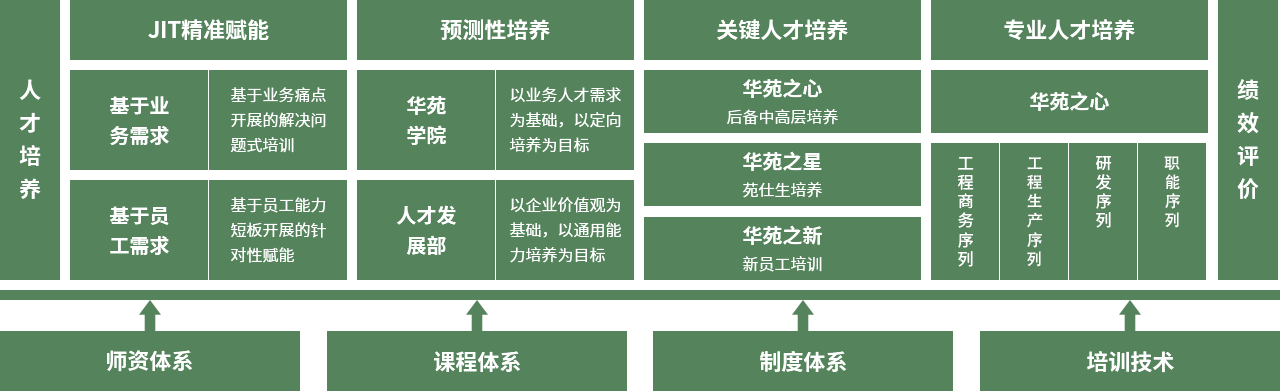 以企業(yè)文化為導(dǎo)向,通過(guò)人才培養(yǎng)和績(jī)效評(píng)價(jià)雙輪驅(qū)動(dòng),打造華苑園林基因的人才供應(yīng)鏈系統(tǒng)